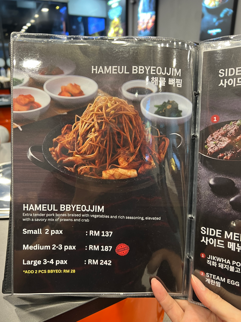 Beyond gamjatang, the menu also features Bbyeogui (RM87), which are grilled pork bones coated in a sticky sauce, as well as Hameul Bbyeojjim — braised pork ribs cooked with seafood.