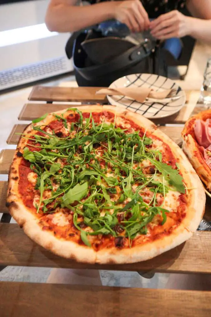 In the thin crust form, the pizza base had a nice crunch which worked well with the toppings. The cheese and tomato base were moist and flavorful with enough tanginess and richness – which served as a perfect bed for the savoury bacon. The generous amount of arugula provided a hint of bitterness to cut though the flavours.