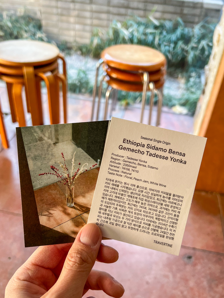Travertine is one of the highlights, serving well-executed specialty coffee in a minimal, Hanok-inspired space. It’s calm, refined, and a great place to slow down with a carefully brewed cup.