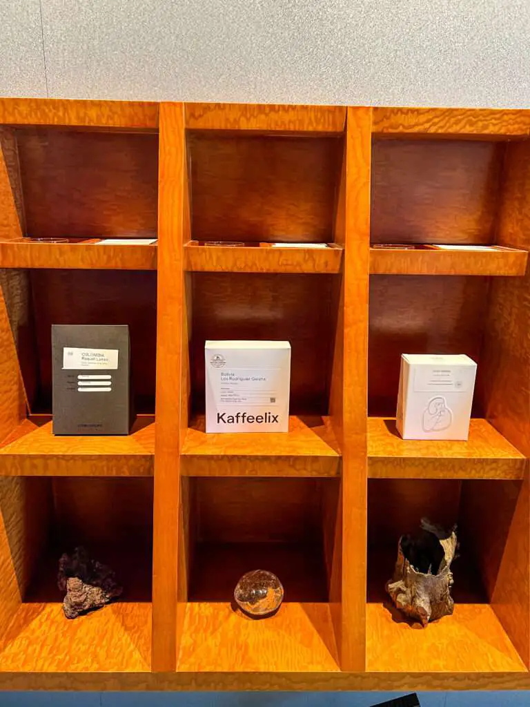 We usually go for the funkier profiles and often order the tasting flight, which lets you sample two different beans side by side. On our last visit, we especially enjoyed Coco Bongo from DAK — cultured with coconut for 144 hours, with clear and expressive coconut notes in the cup.