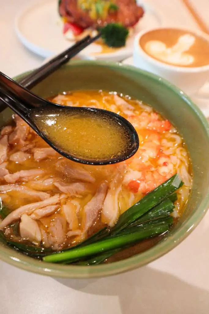 For the price, the portion is generous – topped with plenty of shredded chicken and two pieces of fresh prawns. The broth has a natural, well-rounded umami flavour without relying on artificial prawn taste, which we appreciated.