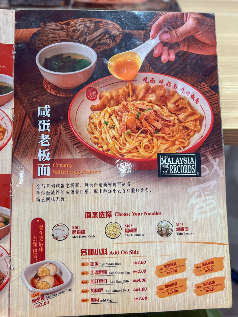 Originally from Johor, Lao Ban Mian has since expanded to more than 12 outlets nationwide. Besides its popular salted egg version, the menu also features interesting variations such as Nyonya Asam, Kam Heong and Mala Pan Mee.