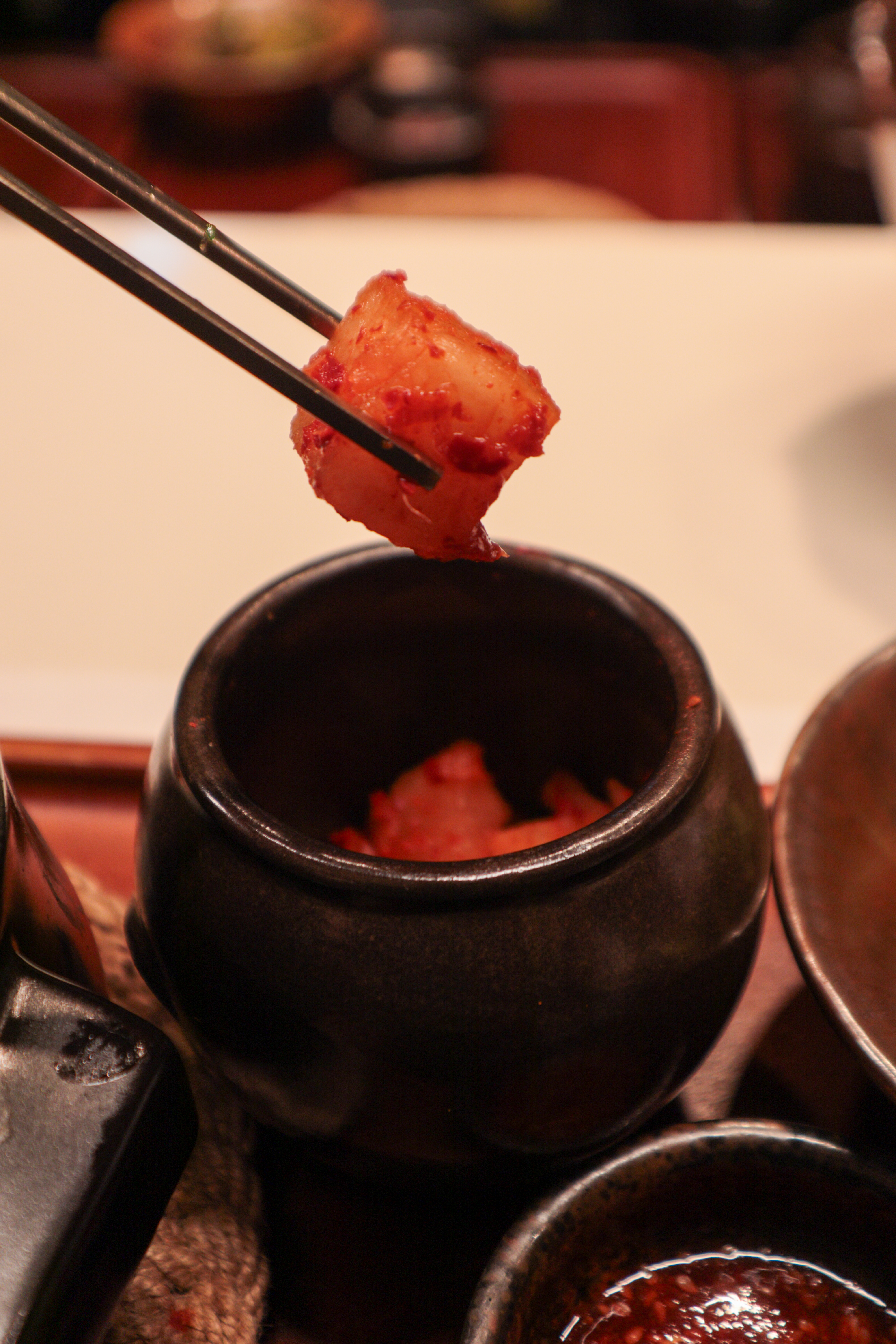 The pancake was crisp and aromatic, offering a nice contrast to the soups. Made with fragrant minari (Korean water parsley), it’s pan-fried until golden on the outside while remaining light inside, with enough savoury bite to keep you reaching for another piece. The addition of bori shrimp lends it a cucur udang–like fragrance.
