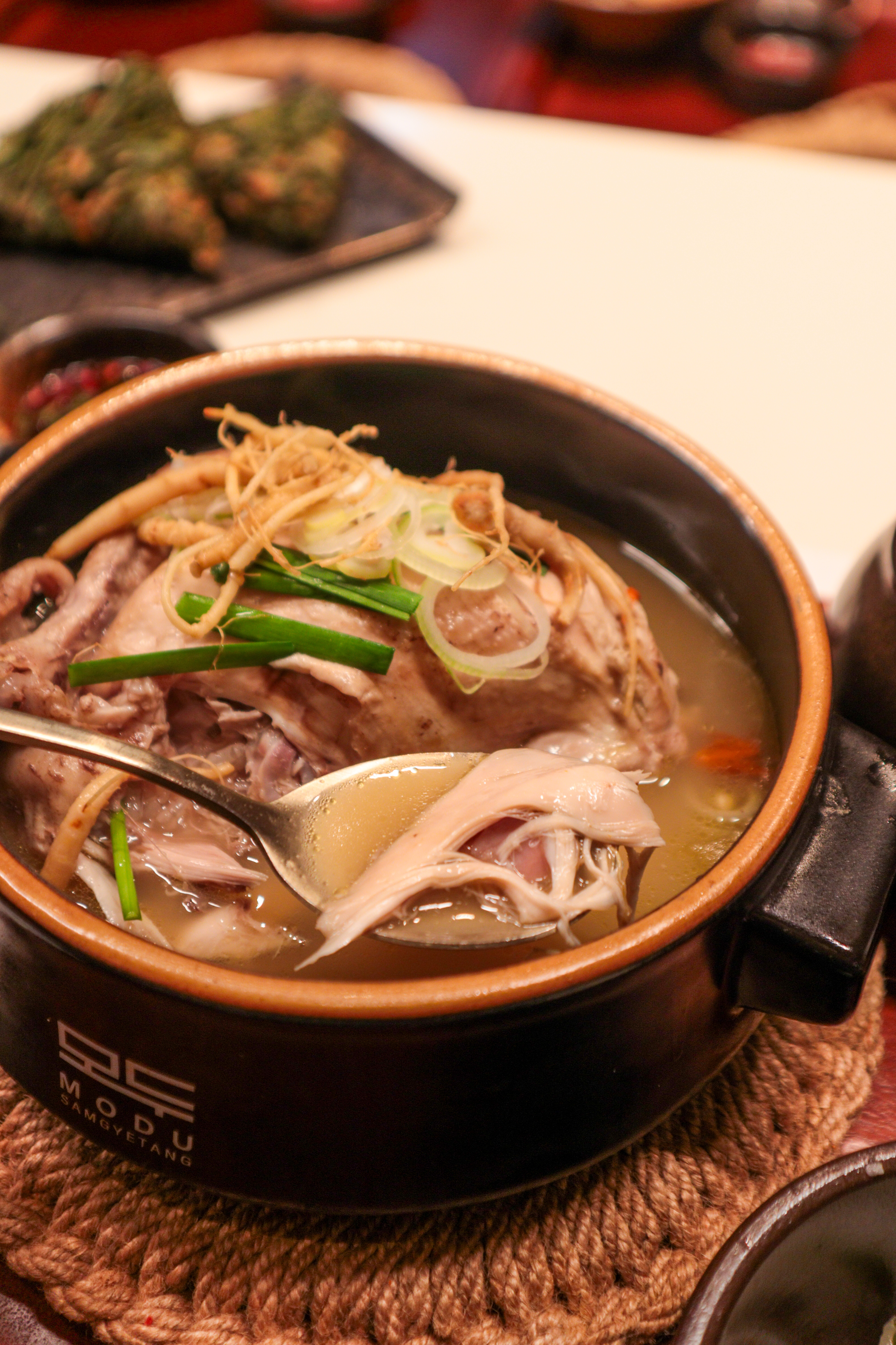 MODU focuses on samgyetang, a slow-cooked ginseng chicken soup that’s rich, nourishing, and surprisingly satisfying without feeling heavy.