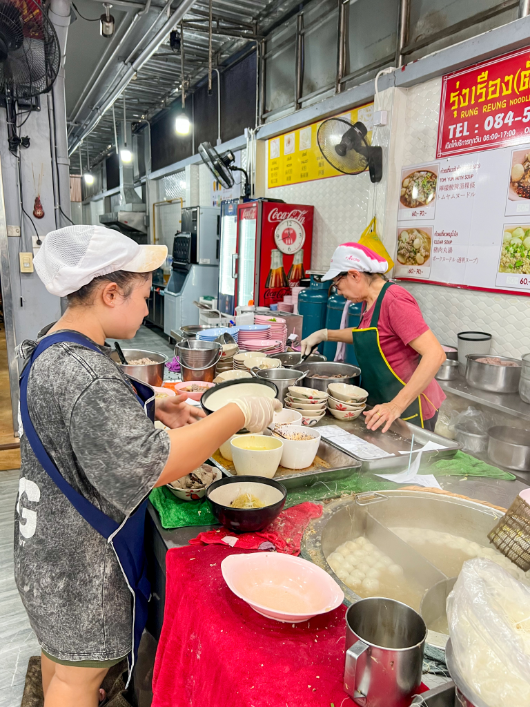 Recognised by the Michelin Guide, Rung Rueang Pork Noodles operates two different shop lots on the same road. Both lots offer comfortable dining space.
