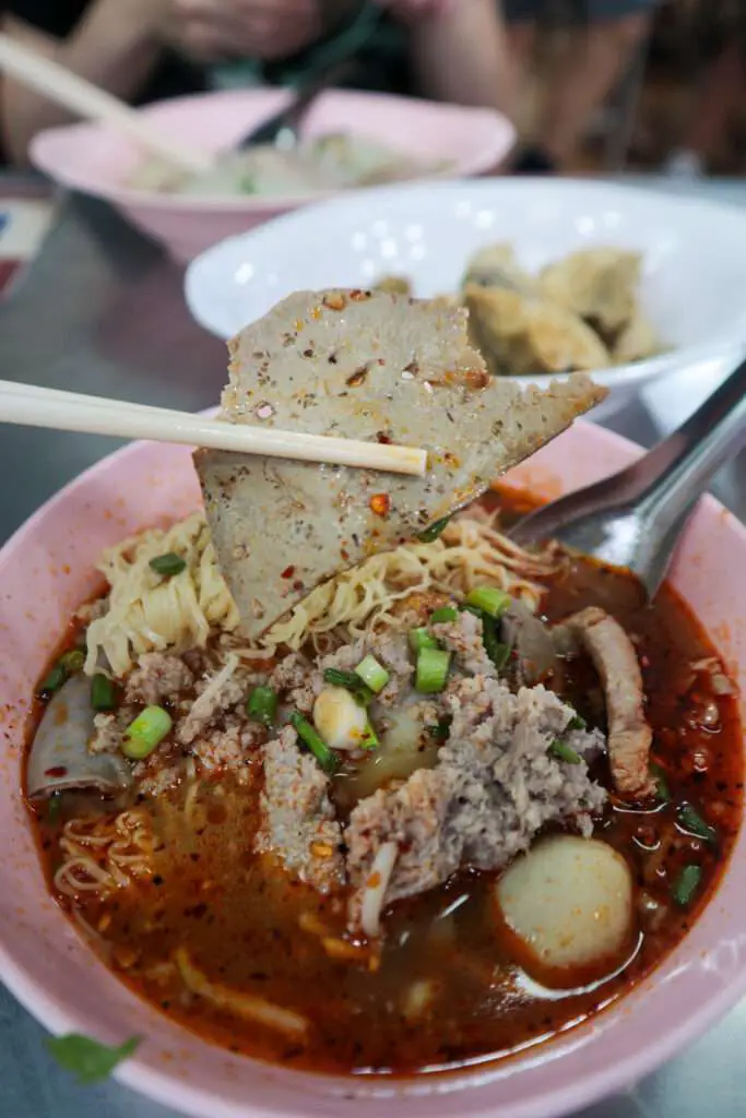 People come here for the pork noodles – served in Tom Yum or Clear Broth, dry or with soup.