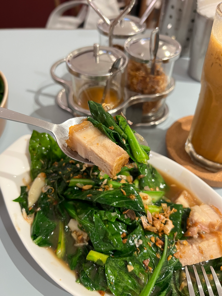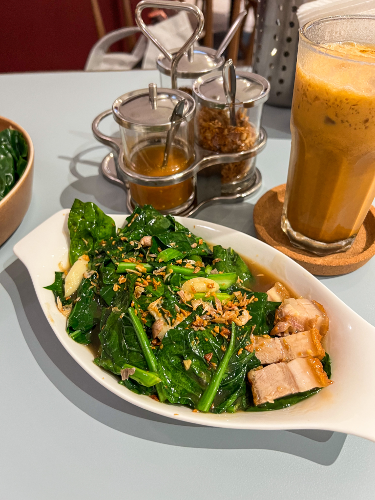 We also ordered the Kai Lan with Siew Yoke (RM18.90) and a Thai milk tea to round out the meal.